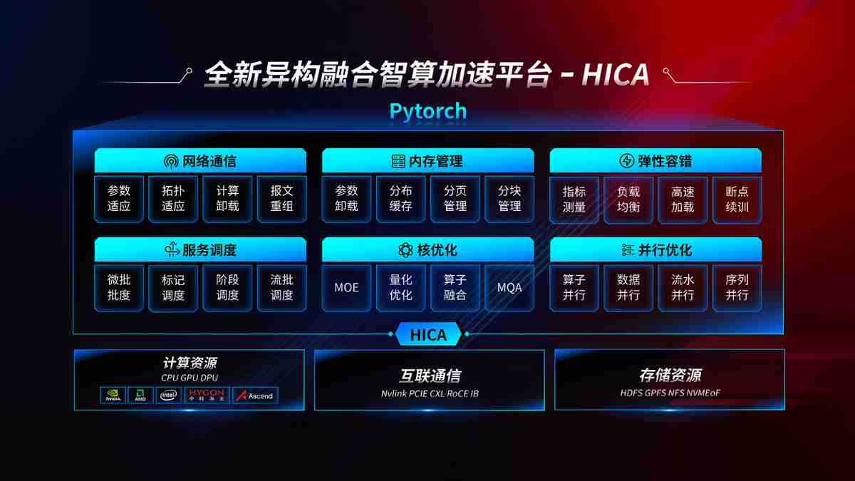 通过自研的服务层、、中间适配层、、以及调度编排算法,,采用数据并行、、模型并行等多种并行方式,,,,把并行计算任务进行有效的分解,,使其分别由相应的软件栈和算力资源来承接。。。。当GPU资源变化,,,,HICA可以实时动态调度计算子任务并调整模型拓扑和架构,,,以充分聚合各种算力资源。。。。